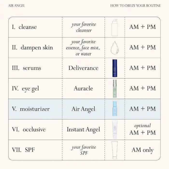 - Another way to use Air Angel? If you find most moisturizers too rich for a daytime cream, you can save the heavier stuff for nighttime