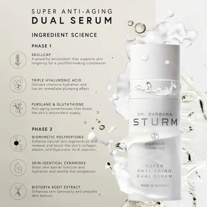 Dr. Barbara Sturm Super Anti-Aging Dual Serum with Triple Hyaluronic Acid, Glutathione, Skullcap + Ceramide-Peptide Complex