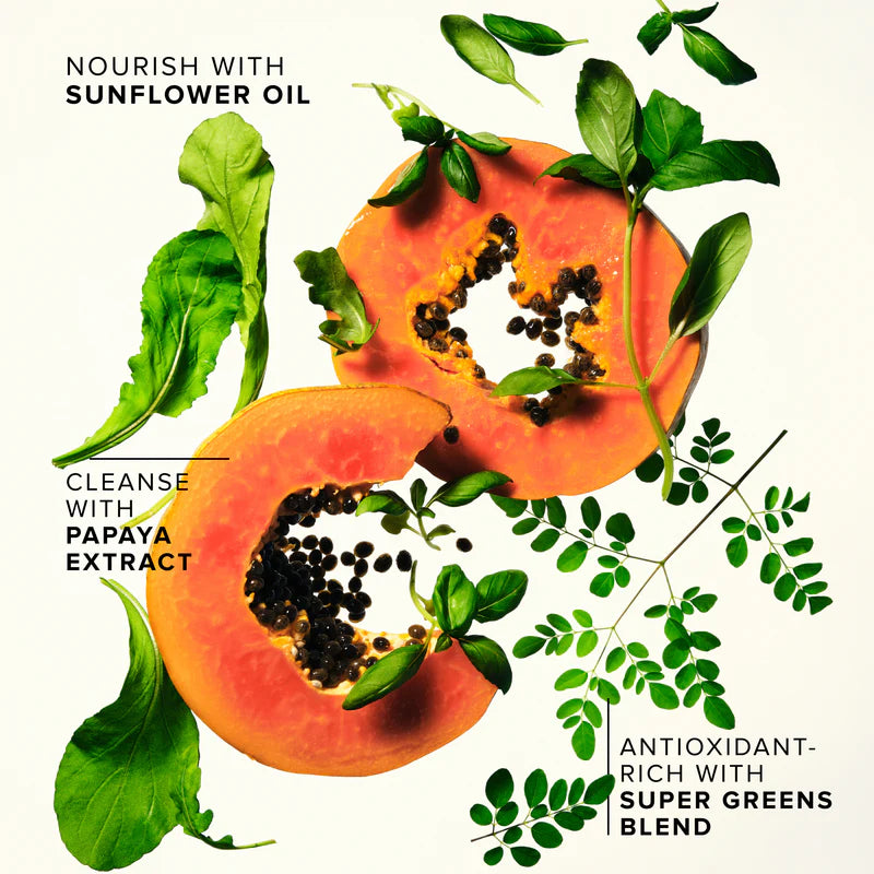 Cetyl Ethylhexanoate, Helianthus Annuus (Sunflower) Seed Oil, Polyglyceryl-6 Dicaprate, Helianthus Annuus (Sunflower) Seed Wax, Polyglyceryl-10 Dioleate, Stearyl Behenate, C10-18 Triglycerides, Polyhydroxystearic Acid, Moringa Oleifera Seed Oil, Ocimum Sanctum Leaf Extract, Eruca Sativa Leaf Extract, Carica Papaya (Papaya) Fruit Extract, Zingiber Officinale (Ginger) Root Oil, Linum Usitatissimum (Linseed) Seed Oil, Brassica Campestris (Rapeseed) Seed Oil, Sorbitan Sesquioleate, Citrus Aurantium Dulcis (Orange) Peel Oil, Cananga Odorata Flower Oil, Citrus Aurantium Bergamia (Bergamot) Fruit Oil, Citrus Aurantifolia (Lime) Oil, Stearoyl Glutamic Acid, Caprylic/Capric Triglyceride, Glyceryl Laurate, Tocopherol, Lecithin, Chromium Oxide Greens (Ci 77288), Citral, Limonene, Linalool.