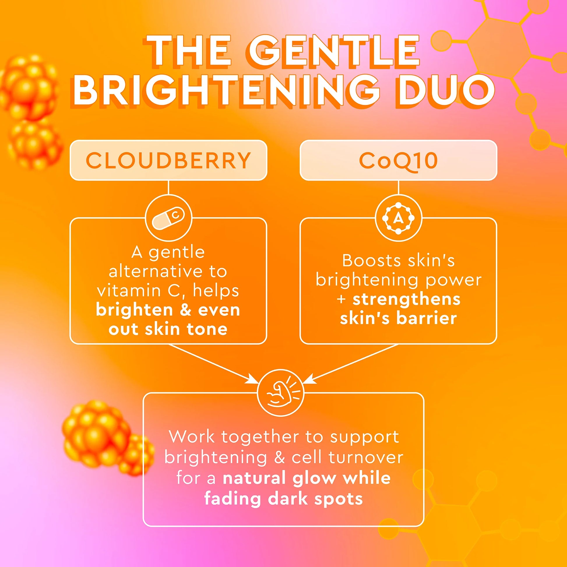 - Antioxidant-rich Cloudberry plus CoQ10 brighten & even tone