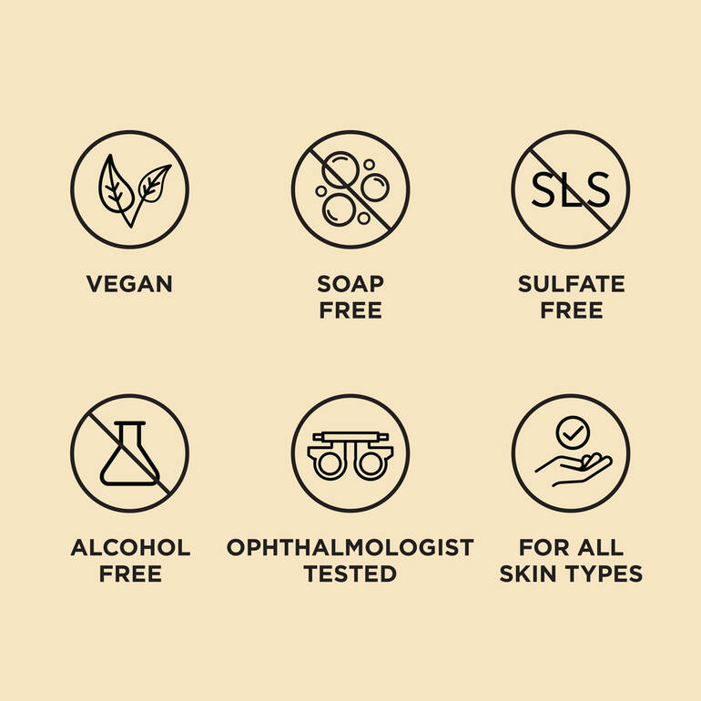 - Vegan, ophthalmologist-tested, sulfate-free, alcohol-free and soap-free cleanser