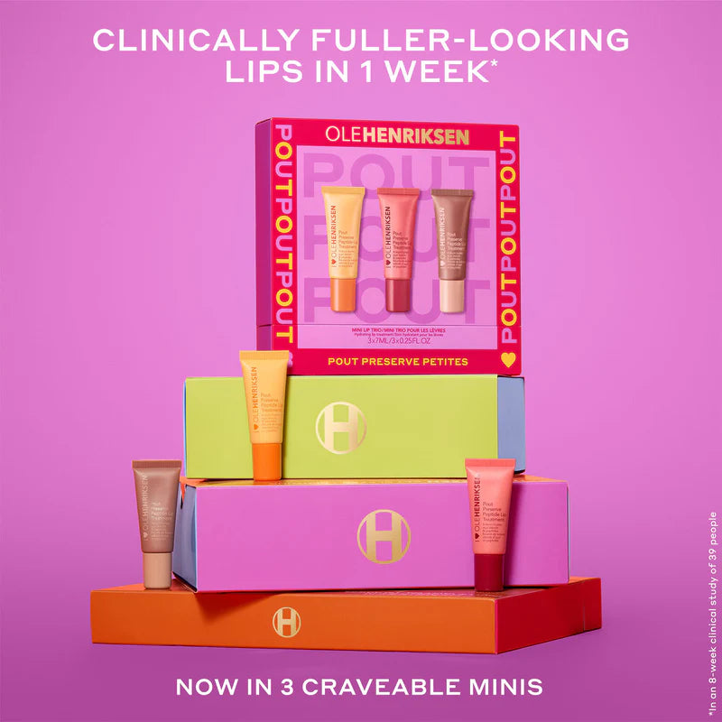 - A limited-edition mini trio of bestselling Pout Preserve Peptide Lip Treatment