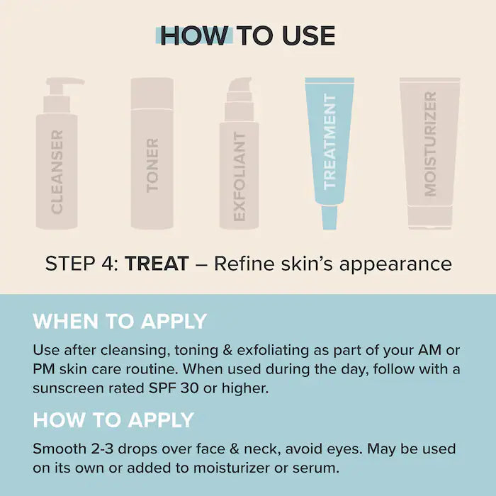 - Dispense 2-3 drops into the palm of your hand and then apply to your face