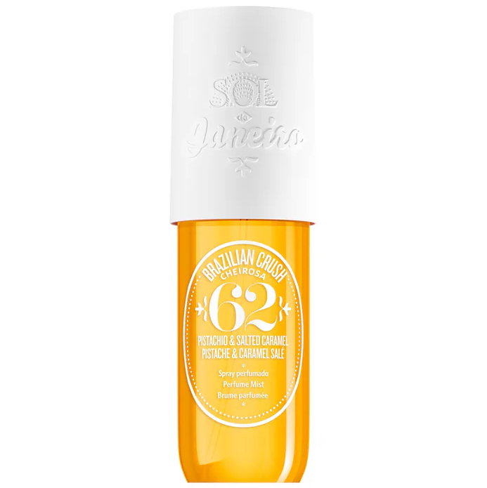 - Perfume mist with delicious notes of pistachio, salted caramel, and vanilla