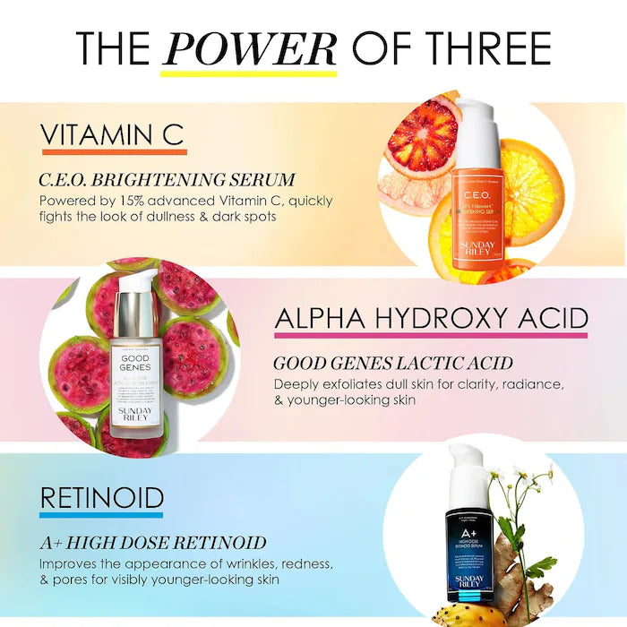- Use an AHA serum, like Good Genes Lactic Acid Treatment (sold separately), in the mornings to sweep away dead skin cells