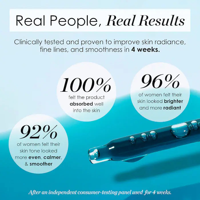 - While improving the appearance of wrinkles, redness, and pores for visibly younger-looking skin
