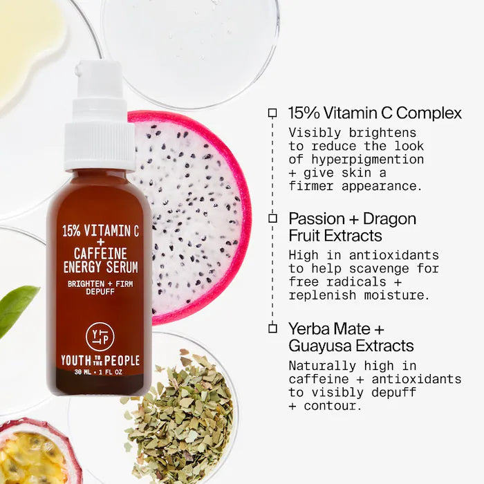 - 0.27 oz/ 8mL 15% Vitamin C + Caffeine Energy Serum