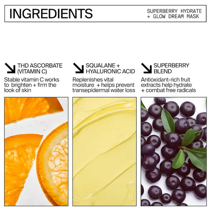 - 0.5oz 15mL Superberry Hydate + Glow Dream Mask
